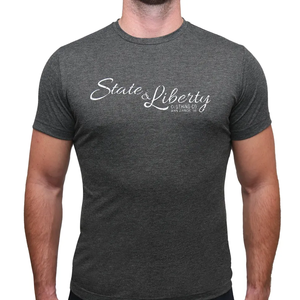 Be the first to review “State and Liberty Logo T-Shirt – Charcoal” Cancel reply