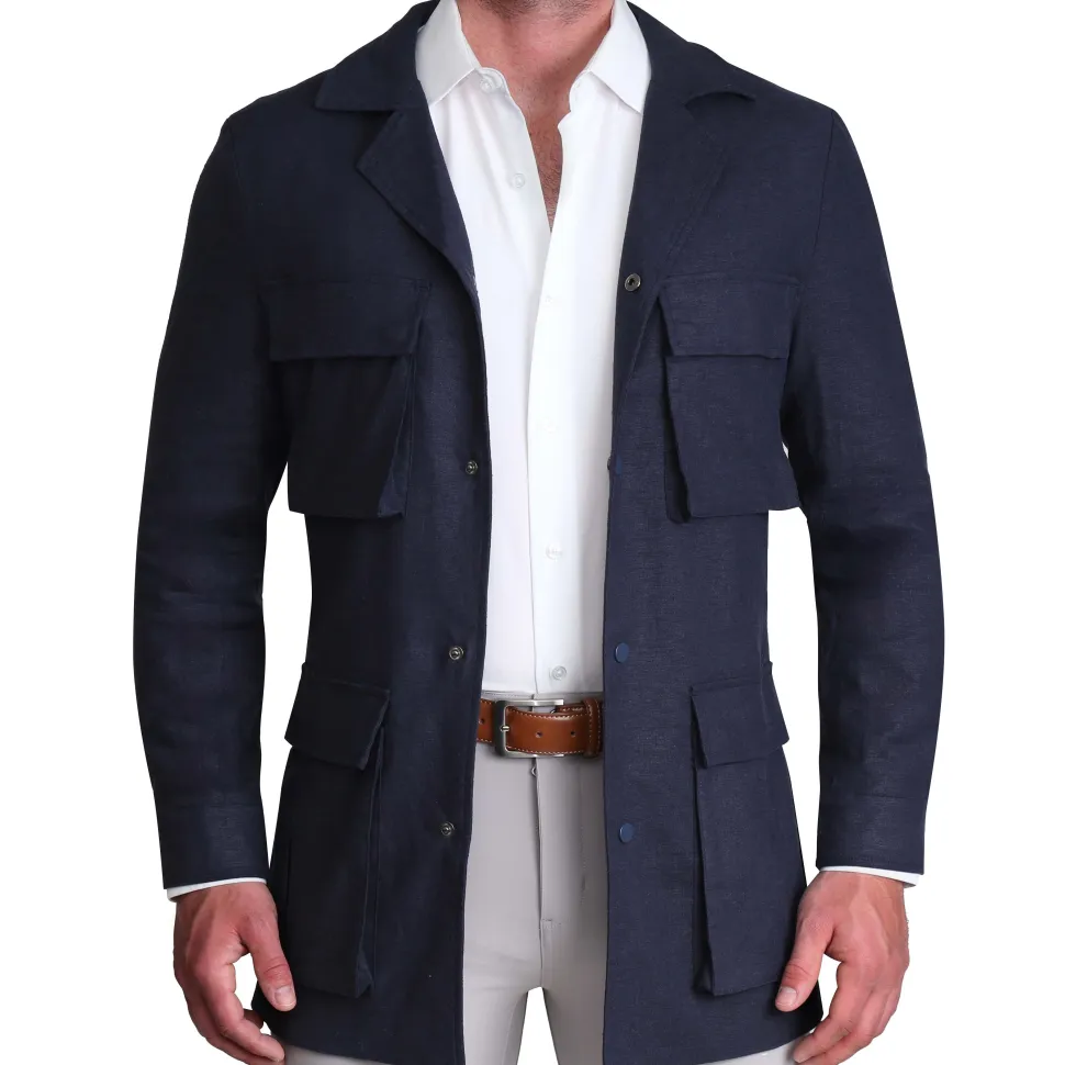 This lightweight field jacket is ideal for a versatile yet sharp look. Adjustable straps on the inside of the jacket allow you to control the tapering for a perfect athletic fit every time. A high collar, patch pockets, and button closures – this jacket pops and will be your go-to at all times.