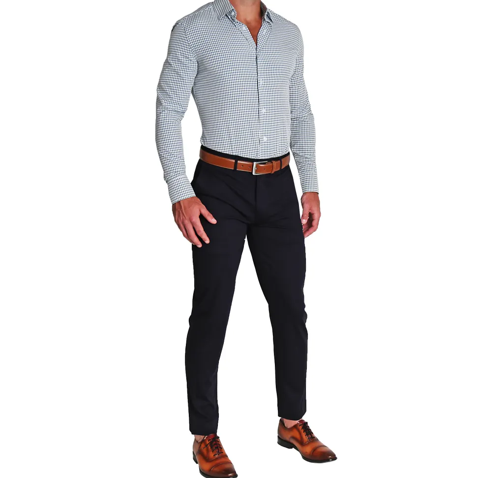 Our Signature Athletic-Fit Dress Shirts are crafted from our Pro Performance Fabric that is lightweight, moisture-wicking, and extremely stretchy. The smooth, woven finish combined with the structured cuffs and collars provides a sharp, professional look, and the stretch in the fabric allows for a close-fitting, modern, tailored look without sacrificing comfort.