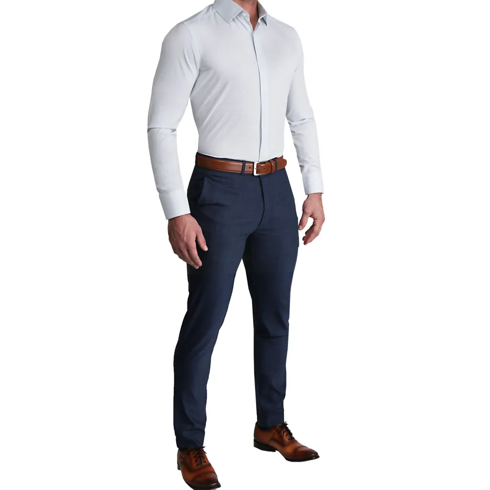 Our Signature Athletic-Fit Dress Shirts are crafted from our Pro Performance Fabric that is lightweight, moisture-wicking, and extremely stretchy. The smooth, woven finish combined with the structured cuffs and collars provides a sharp, professional look, and the stretch in the fabric allows for a close-fitting, modern, tailored look without sacrificing comfort.