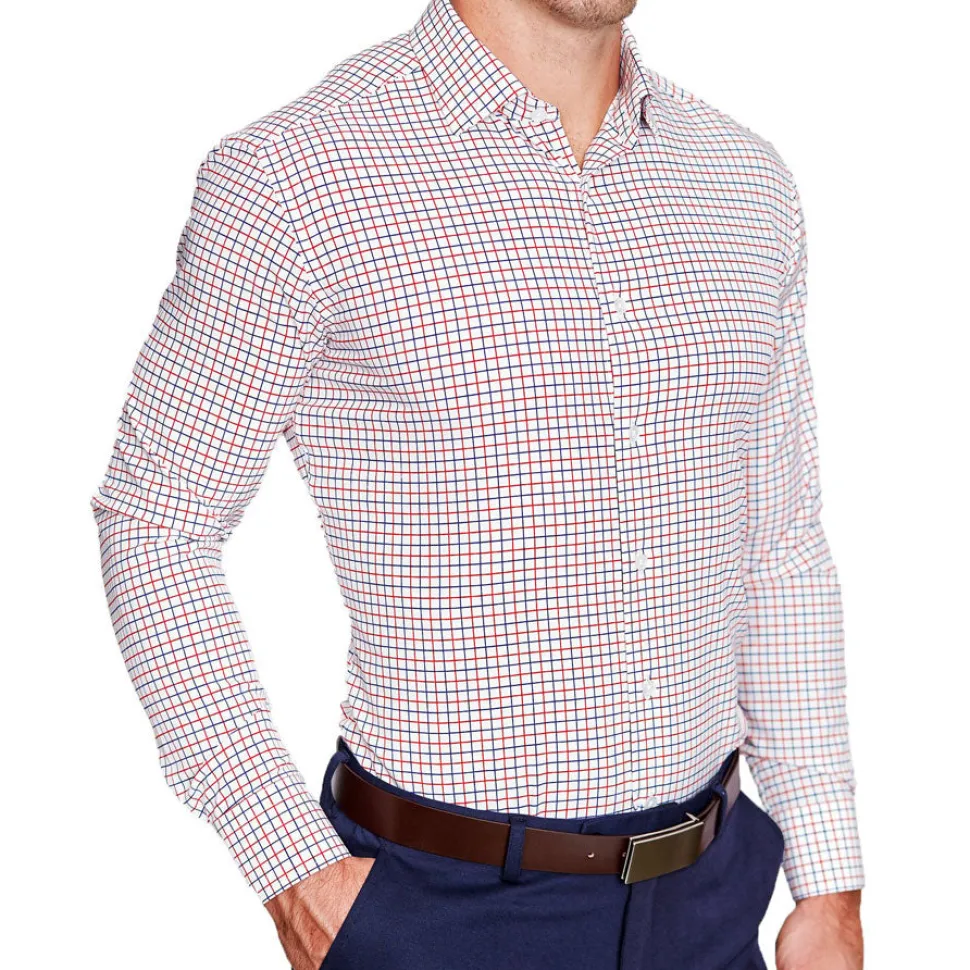 Our Signature Athletic-Fit Dress Shirts are crafted from our Pro Performance Fabric that is lightweight, moisture-wicking, and extremely stretchy. The smooth, woven finish combined with the structured cuffs and collars provides a sharp, professional look, and the stretch in the fabric allows for a close-fitting, modern, tailored look without sacrificing comfort.