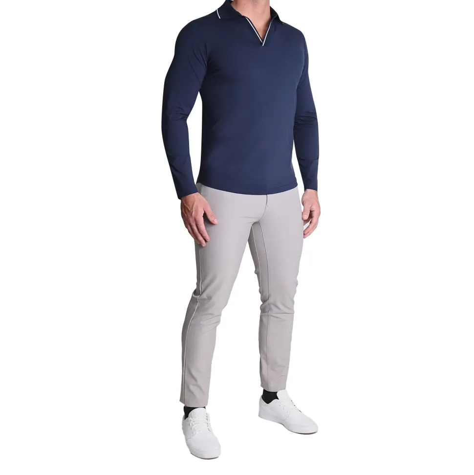 Cut with our signature athletic fit and crafted from our soft and stretchy cotton-spandex performance fabric, this retro-inspired ribbed tipped knit long-sleeve polo is guaranteed to be a timeless staple in your closet for years to come.