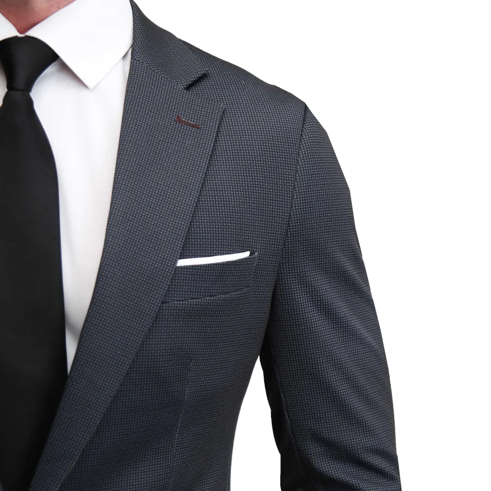 Our blazers are crafted from a performance fabric blend that is lightweight, breathable, and extremely stretchy. The finish on the fabric, combined with the expertly crafted details and the internal canvassing, results in a naturally structured fit that gives a sharp and professional appearance. Our blazers are intended to be worn close fitting to the body, and the stretch in the fabric allows for a modern tailored fit without sacrificing comfort.