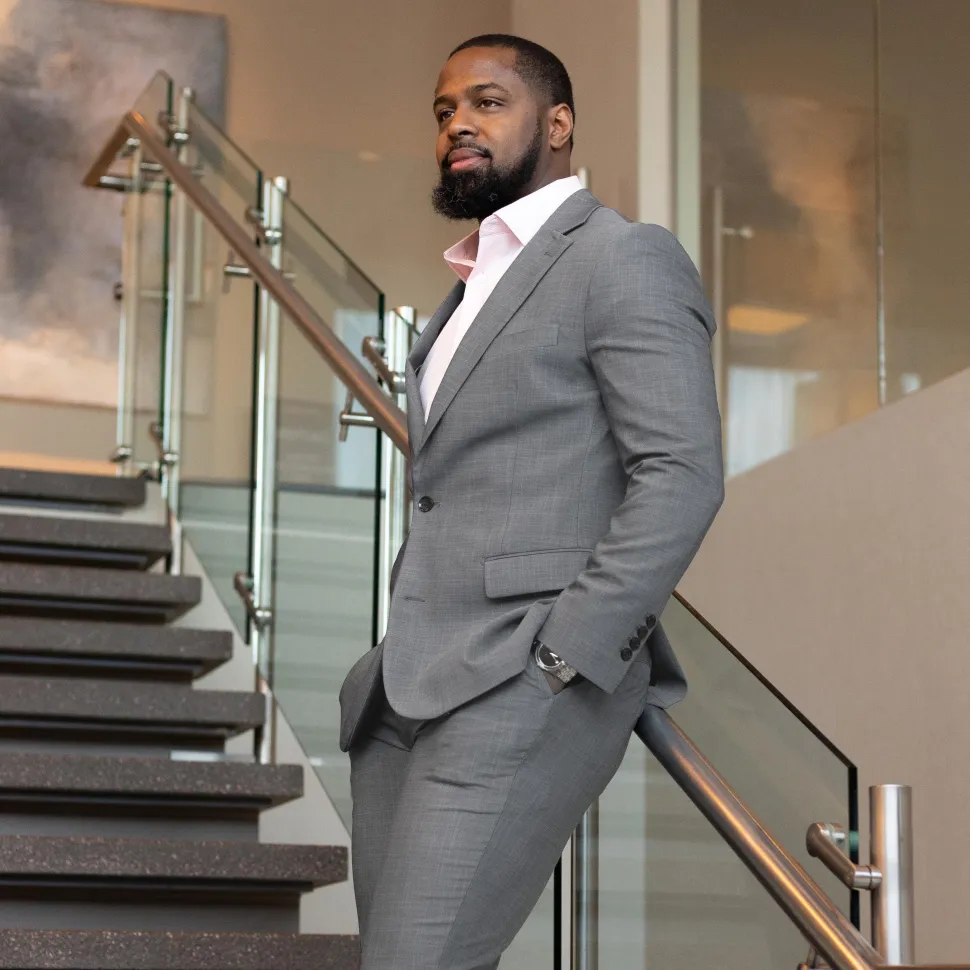 State and Liberty Athletic Fit Stretch Suit – Heathered Grey