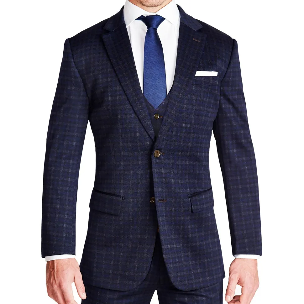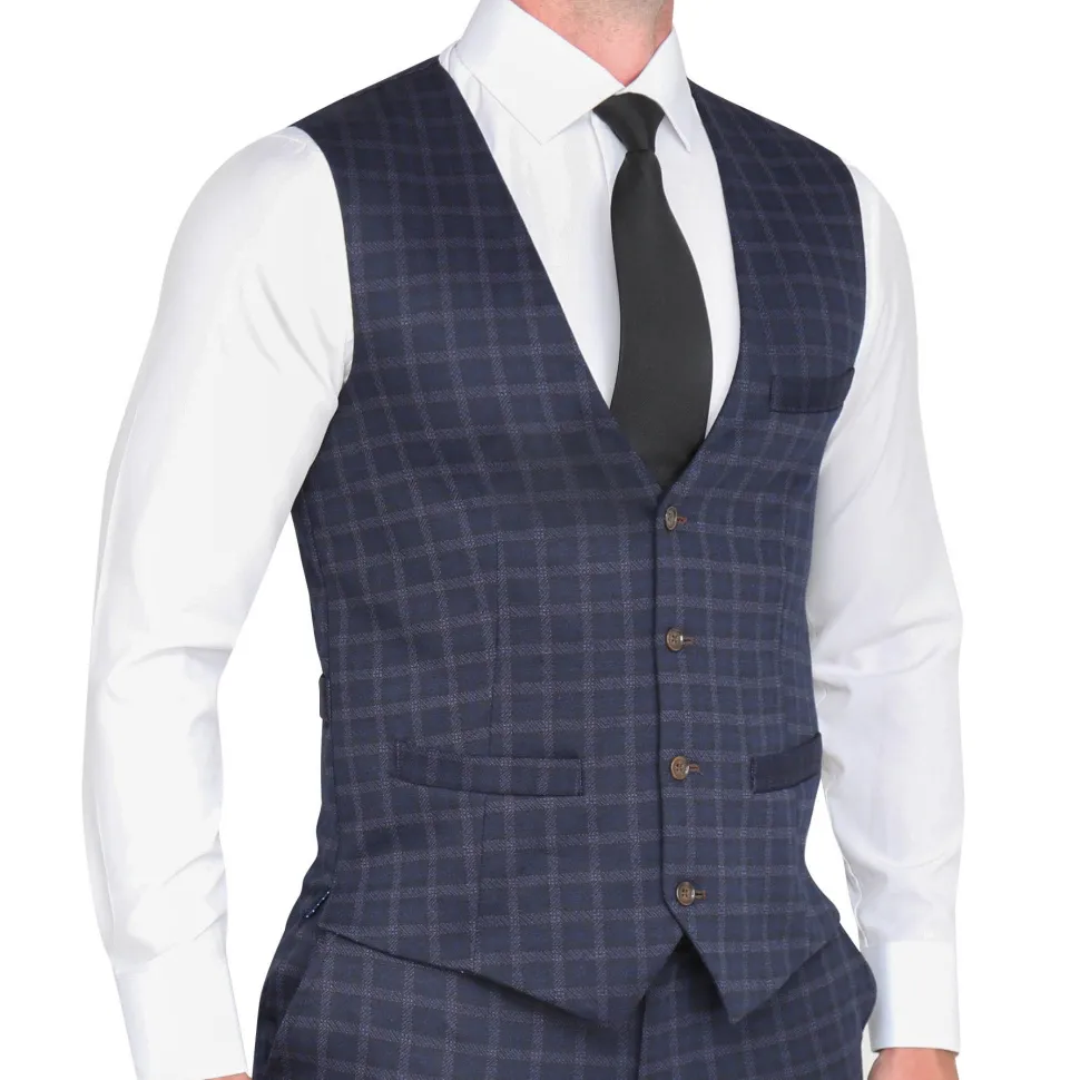 State and Liberty Athletic Fit Stretch Suit Vest – Blue Plaid