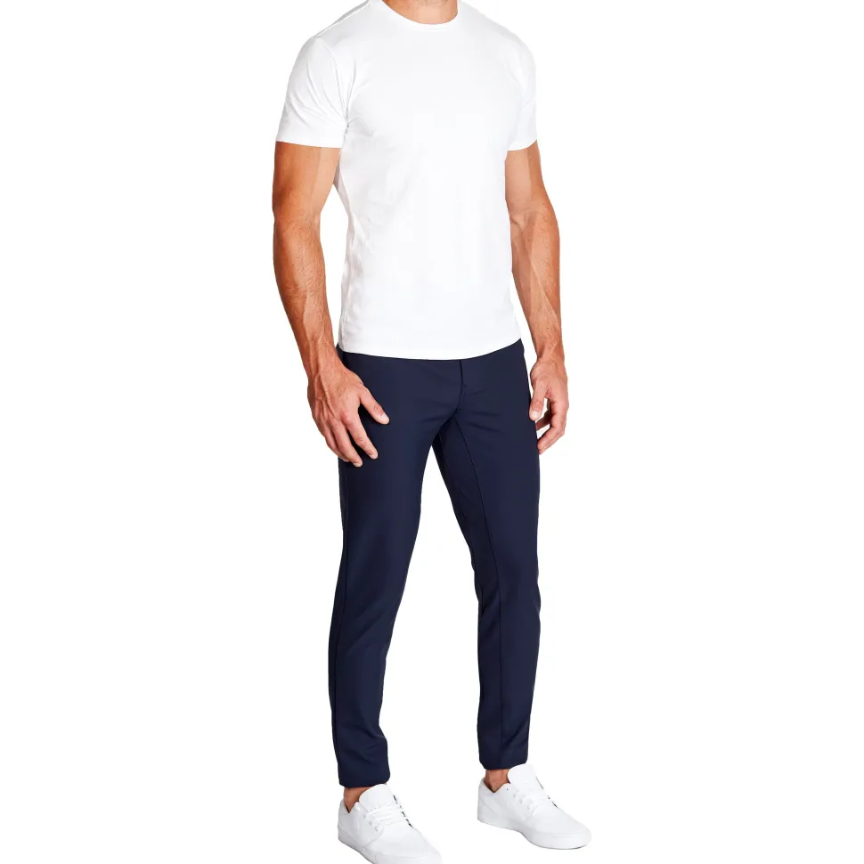 Built on the forefront of fit, comfort, and a versatile look – our tech chinos are built for guys who need more room in the seat, thighs, and quads while still looking to achieve a tapered look. The smooth finish results in a clean, casual appearance, while the construction and details allow for them to be dressed up to be worn more professionally. The insane amount of stretch in these chinos allows for a modern, tailored fit without sacrificing comfort.
