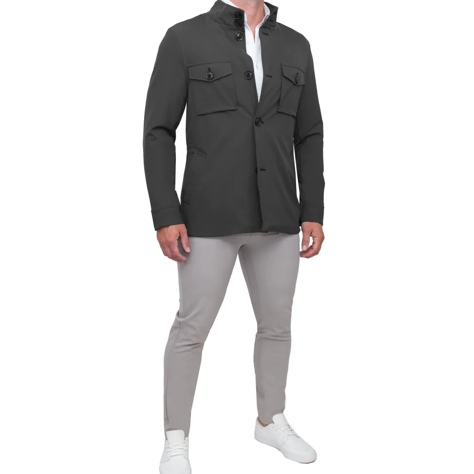 This lightweight field jacket is ideal for a versatile yet sharp look. Adjustable straps on the inside of the jacket allow you to control the tapering for a perfect athletic fit every time. A high collar, patch pockets, and button closures – this jacket pops and will be your go-to at all times.
