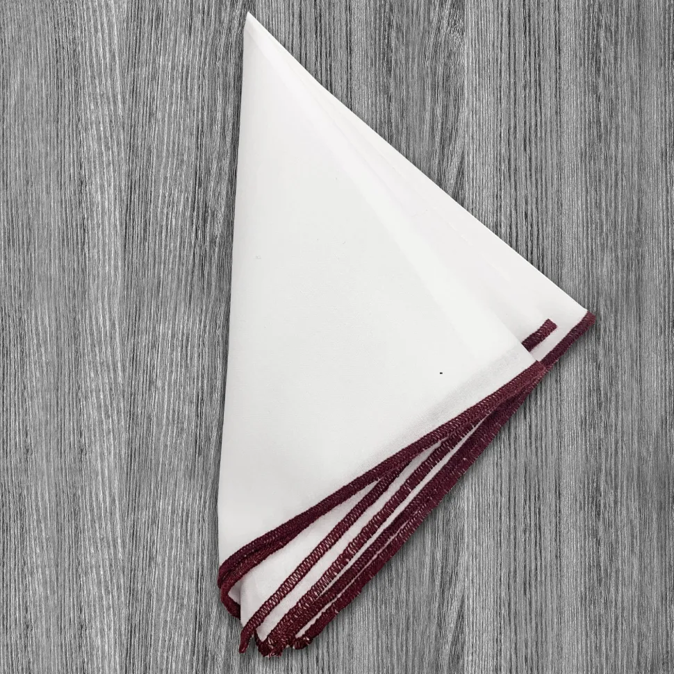 State and Liberty Pocket Square – White With Maroon Edge Stitch