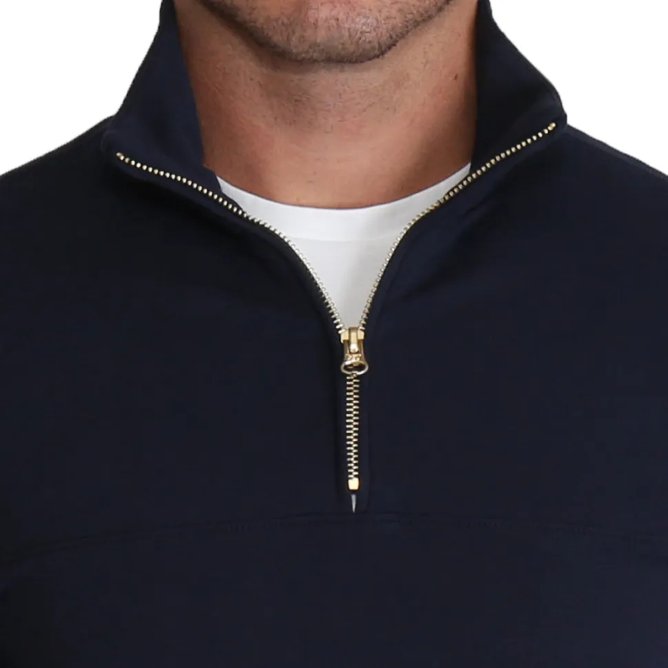 A true athletic fit quarter-zip crafted from absurdly soft and stretchy performance fabric. This quarter-zip puts a modern look on a classic sweater – it pairs well with our dress clothes and looks great with our tech chinos. This quarter-zip will be your go-to layer from the office to the first tee and everywhere in between.