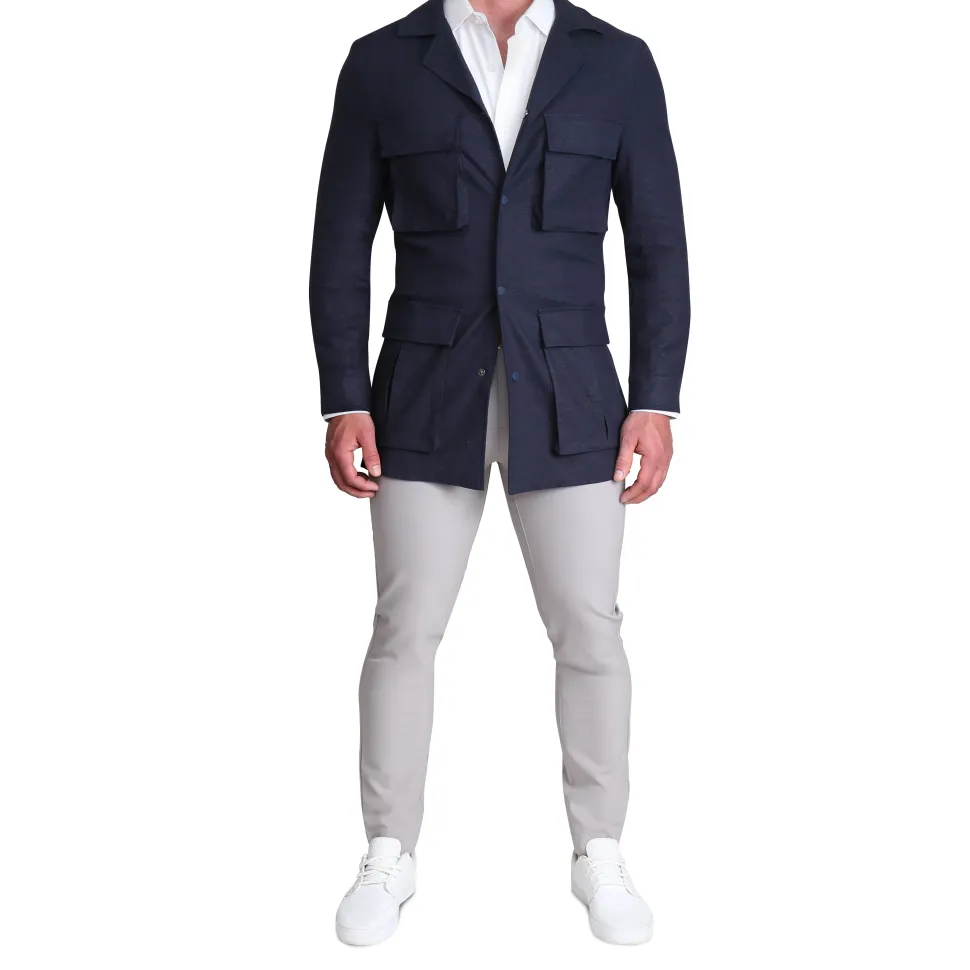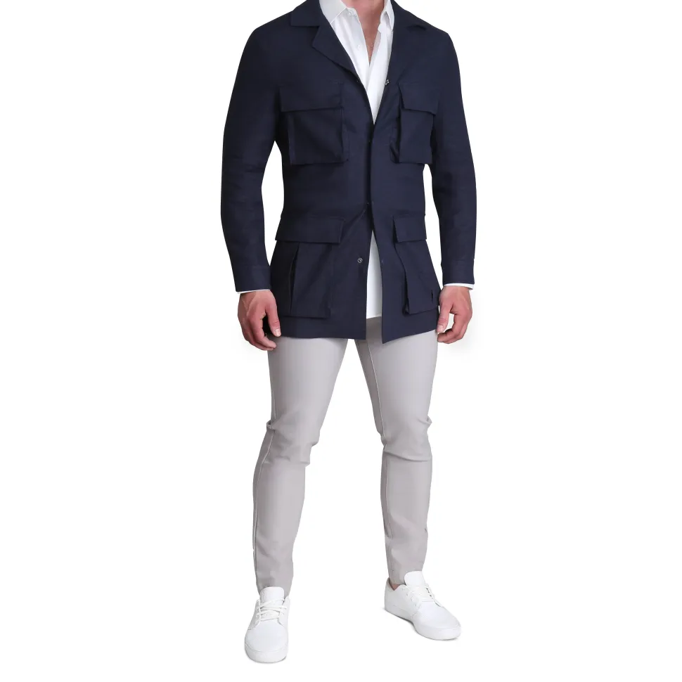This lightweight field jacket is ideal for a versatile yet sharp look. Adjustable straps on the inside of the jacket allow you to control the tapering for a perfect athletic fit every time. A high collar, patch pockets, and button closures – this jacket pops and will be your go-to at all times.