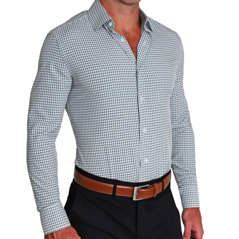 Our Signature Athletic-Fit Dress Shirts are crafted from our Pro Performance Fabric that is lightweight, moisture-wicking, and extremely stretchy. The smooth, woven finish combined with the structured cuffs and collars provides a sharp, professional look, and the stretch in the fabric allows for a close-fitting, modern, tailored look without sacrificing comfort.