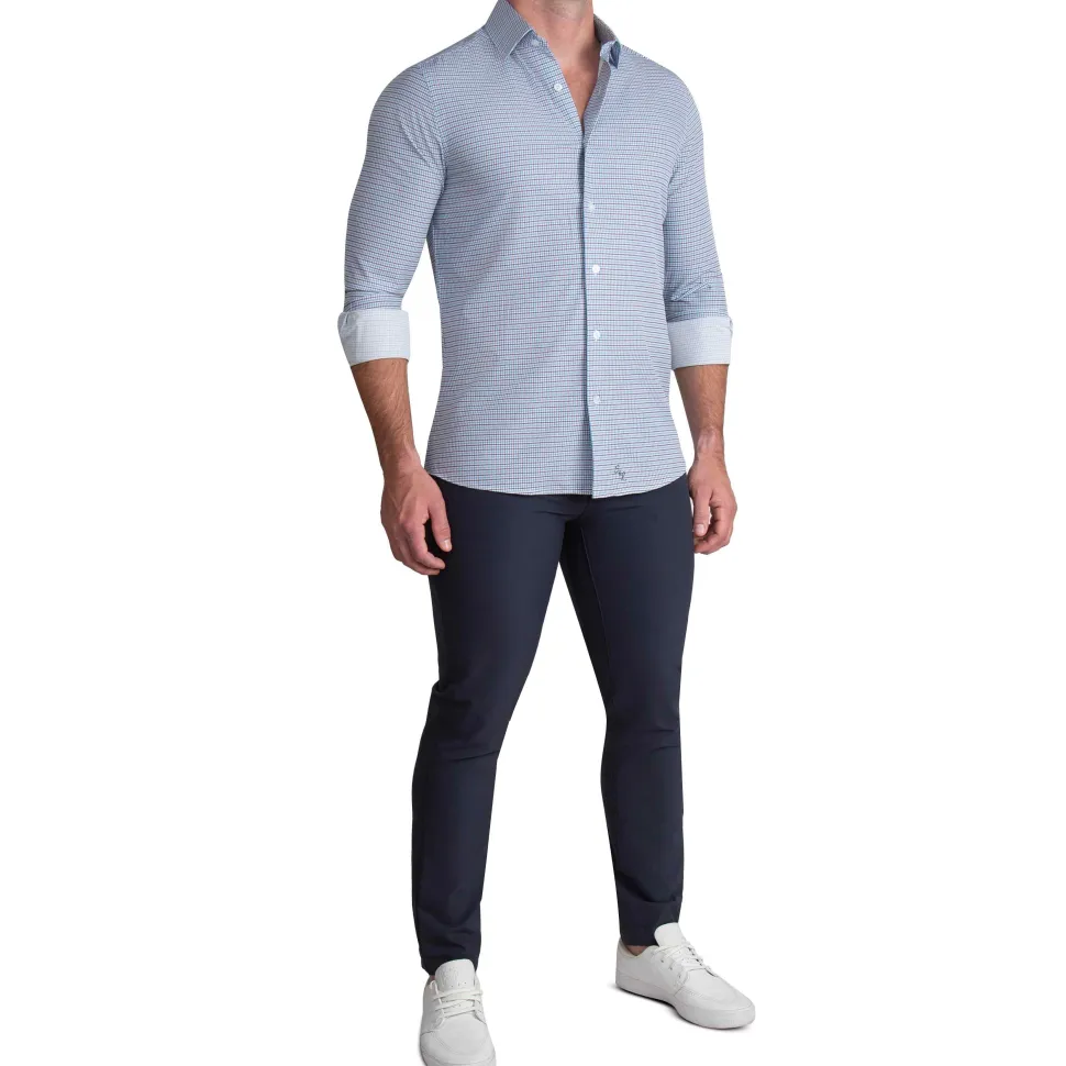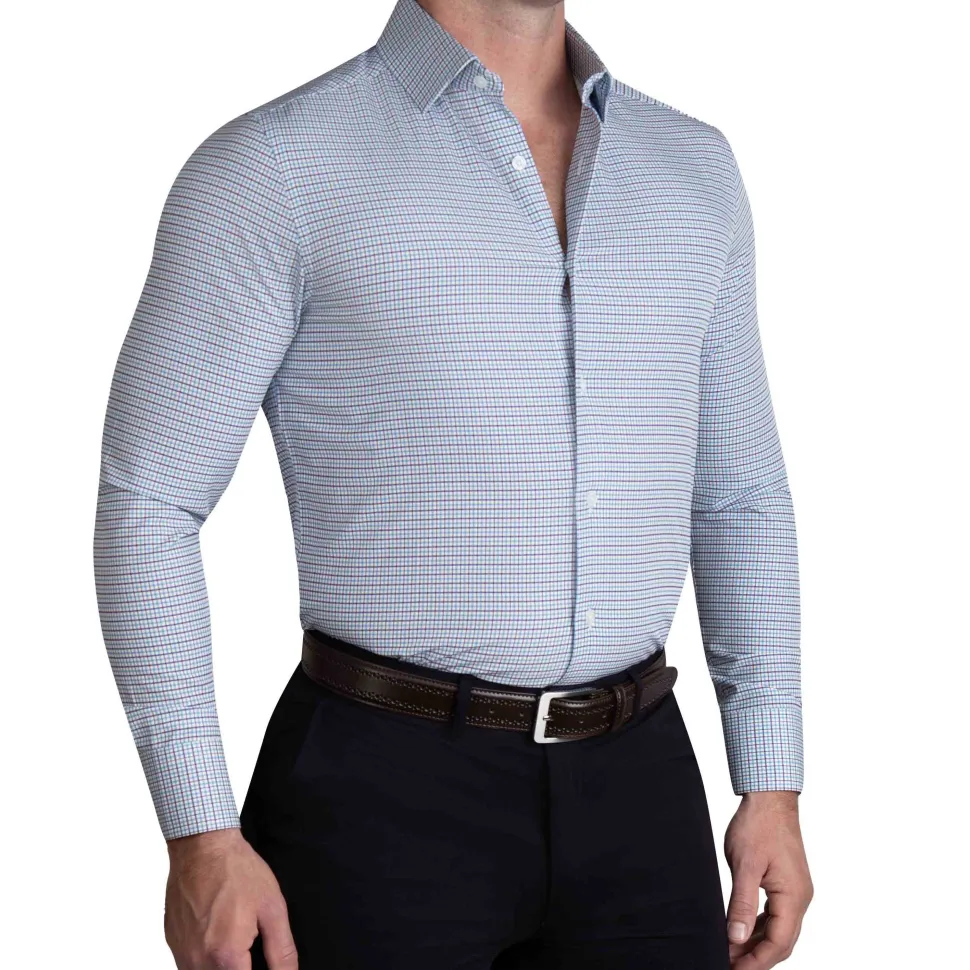 Our Signature Athletic-Fit Dress Shirts are crafted from our Pro Performance Fabric that is lightweight, moisture-wicking, and extremely stretchy. The smooth, woven finish combined with the structured cuffs and collars provides a sharp, professional look, and the stretch in the fabric allows for a close-fitting, modern, tailored look without sacrificing comfort.