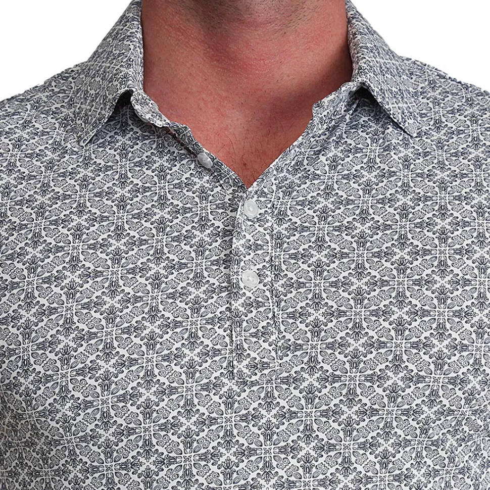 Crafted from an incredibly soft and stretchy nylon-spandex performance fabric blend, this short-sleeved polo regulates body temperature, has superior moisture-wicking properties, and extreme stretch.