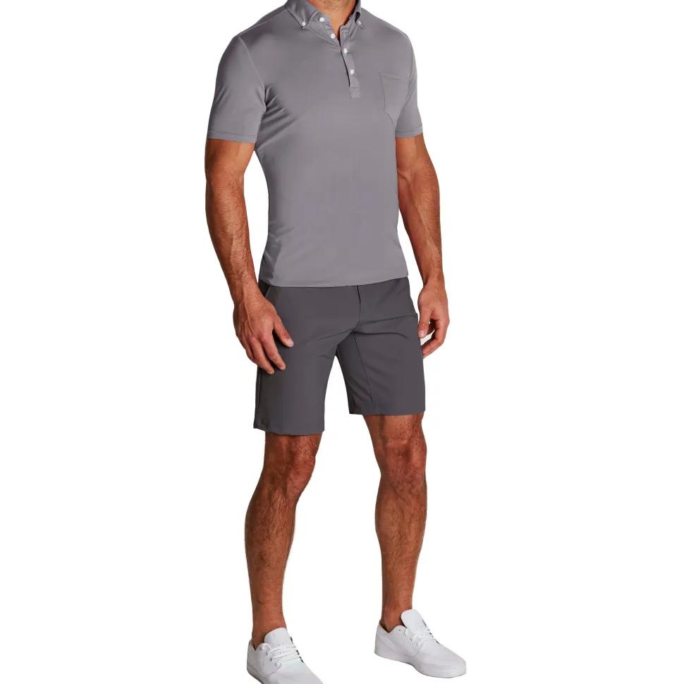 Crafted from an incredibly soft and stretchy nylon-spandex performance fabric blend, this short-sleeved polo regulates body temperature, has superior moisture-wicking properties, and extreme stretch.